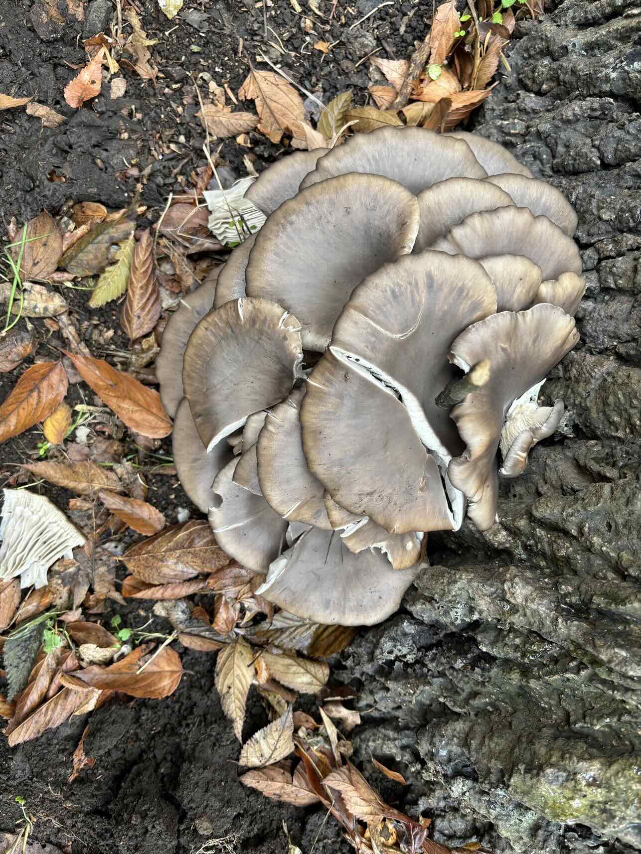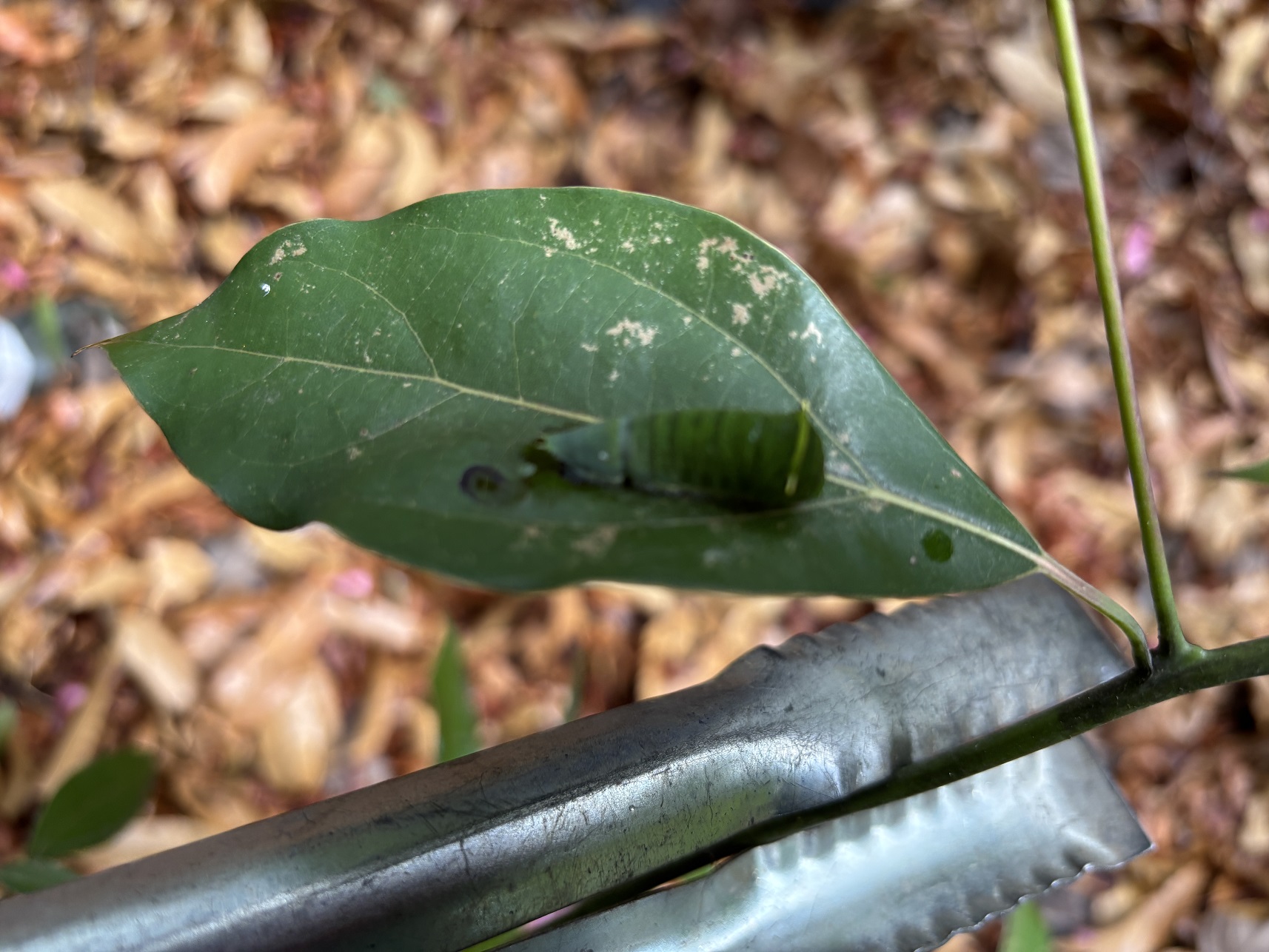 入口のクヌギ切り株にヒラタケ?が、またシロダモの葉にアオスジアゲハの幼虫がいるなど冬の樹林地の楽しさもみえてきた。次は、1月18日(日)植生調査と新年会を樹林地内で行う予定(あべ)