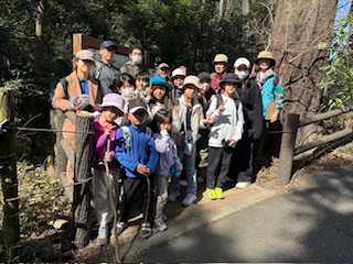 2026年最初の活動日は、晴れており調査と懇親会を行った。ボランティア講座受講生の参加もあり植生調査から始め、全員が揃ってから入口のご神木としているシラカシにお神酒・お米・塩を供えて「山開き」で今年1年の安全祈願とした。雑木林広場、ツバキの森、シャガの広場と植生調査を、マテバシイ広場で4か所の方形枠調査を林内巡回しながら行った。雑木林広場は27種、ツバキの森は9種、シャガの広場33種と10月より10種以上種数が少なく落葉によるものである。