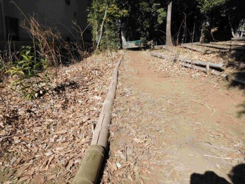 ④ 第1緑地民地境界の土留め柵の柱数本の根元が腐食