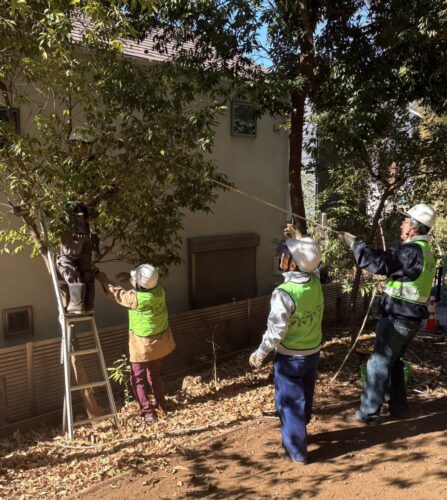② 第1緑住宅隣接樹木が住宅に接近➡︎本日シラカシなど2本の枝を剪定