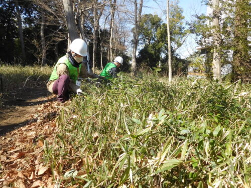 ③ 第2緑地のオカメザサの笹苅実施➡︎「メジロ」「シロハラ」「ウグイス」等の野鳥を確認したので緑地奥部のササは刈らずおく