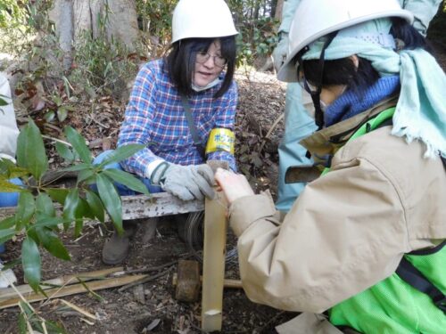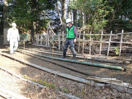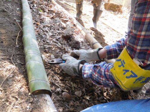 ② 土留 孟宗竹の差替え(腐り傷んだ孟宗竹2本差替え)