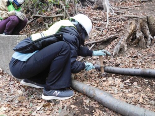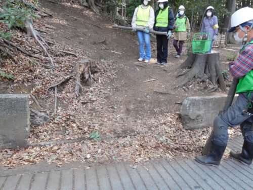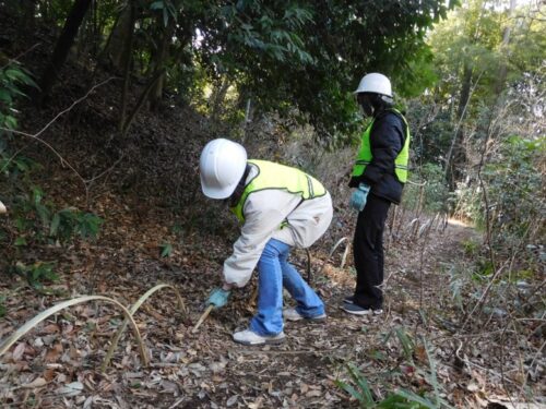 カラッと晴れ、作業にはもってこいのベストコンディション。入会間もない若手会員に対して、先輩会員から道具の持ち方、姿勢、作業要領等を優しく指導しつつ、いずれも第1緑地の5カ所で活動を行った。