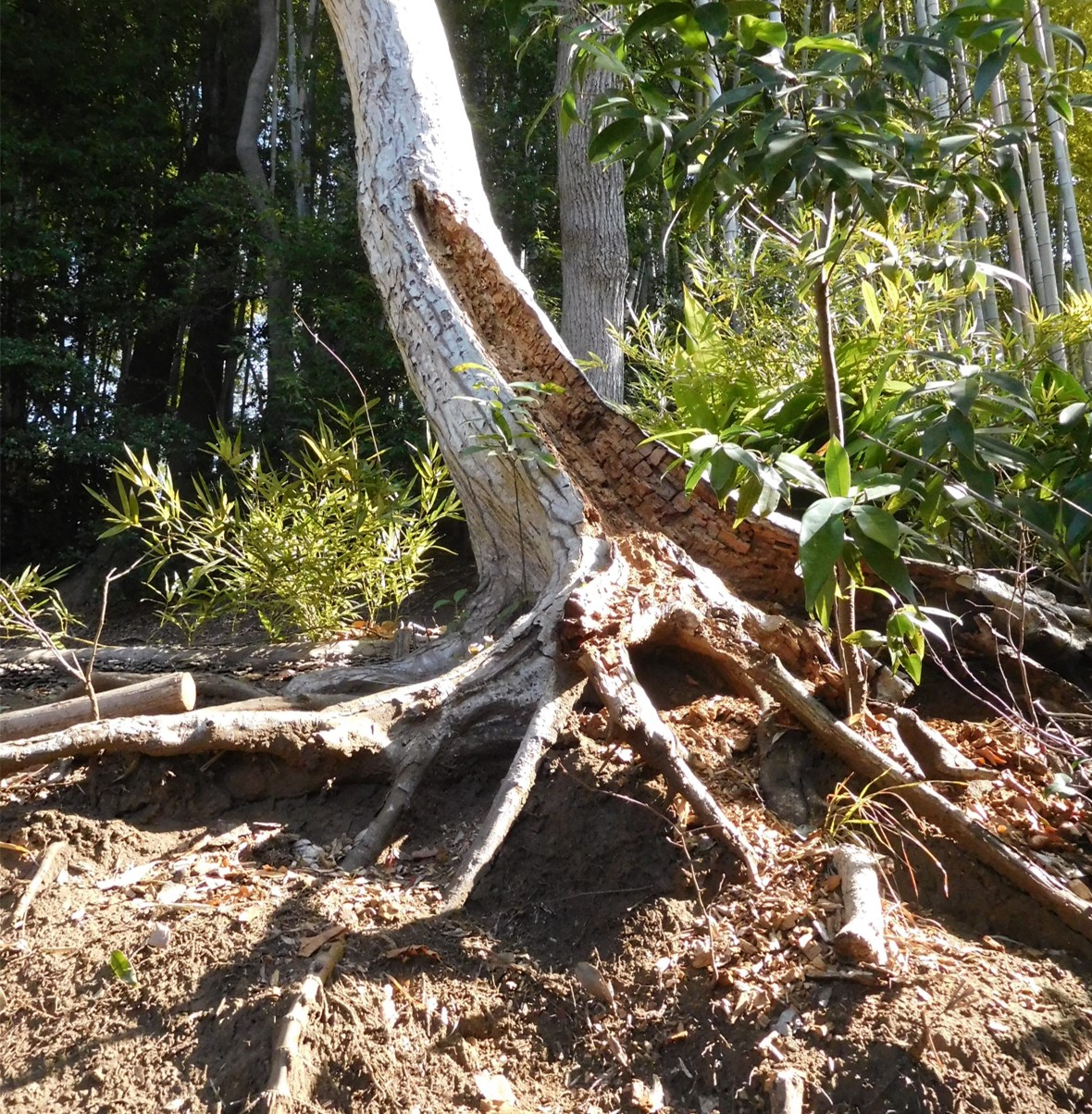 根元部分が大きく腐食し倒木の恐れがあるため、市により3月中に伐採予定
